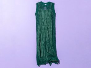バックサイドは編み地が斜めになっていて、自然と体に沿うような美シルエットに。Vカットの深さもブラが見えない位置になっているので、下着が見えてしまうこともなく一枚でおしゃれが完成します♪