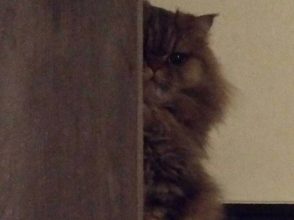 毎晩、飼い主が眠りについただろう隙を狙って小1時間ほど姿を消します。最初の2、3日はどこにいるのか全く分からなかったのですが、見当たらないと思ったときは大抵すぐ近くにいます。そして見つかったときは、上を向いてごまかすという古典的な方法をとるという猫あるある。