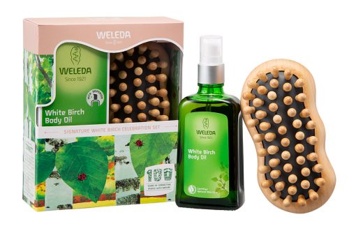 肌を引き締めてなめらかに整える「ホワイトバーチ ボディオイル」と、ヴェレダ日本上陸40周年で発売して大人気だった限定ブラシの復刻版「アニバーサリー ボディブラシ」のセット。さらに、ボディブラシのセルフケアガイド付き!