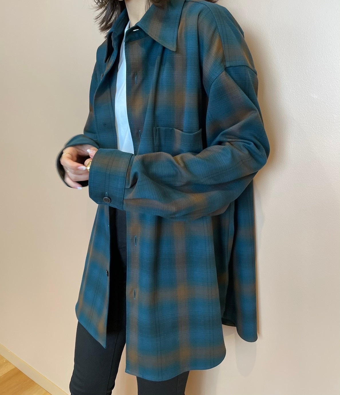 秋に買い足し予定だったチェックシャツも、今回の試着会で超好みのタイプを発見! 男の子がTシャツに羽織っているようなバサッと着られるデザインや色を探していたので、このシャツはまさに理想の一枚に出合えた気分♡ レディースのものだと色合いがかわいい感じだったり、サイズ感がコンパクトだったり、ちょっぴりフェミニンに寄せているものが多いので、リアルなメンズシャツを狙って正解でした!