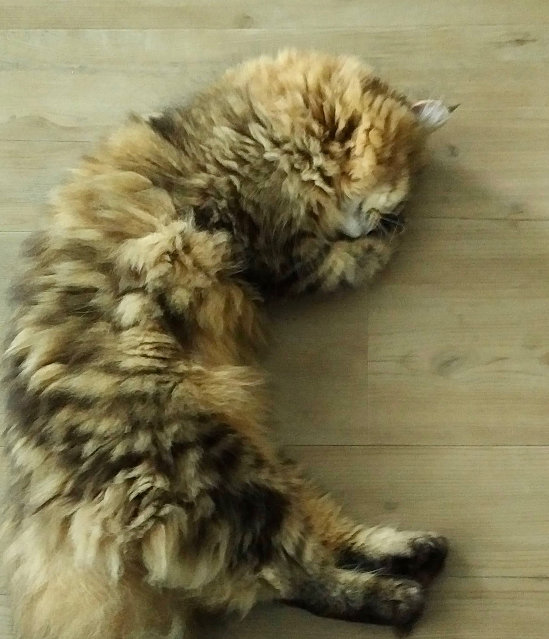 便乗しようとトラちゃんの招き猫らしい写真を探してみましたが、1枚もありませんでした。見つけたのは、「イェーイ!」状態で寝ているトラちゃんの写真のみ。