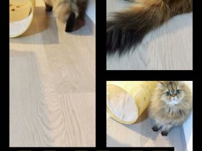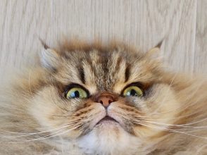 そして春になり、暑さが増してくるにつれ、なぜか顔まわりの毛もムクムクと増えはじめたトラちゃん。アインシュタイン風に伸びていくため、どうしても写真に勢いがついてしまう事態に陥った夏でした。