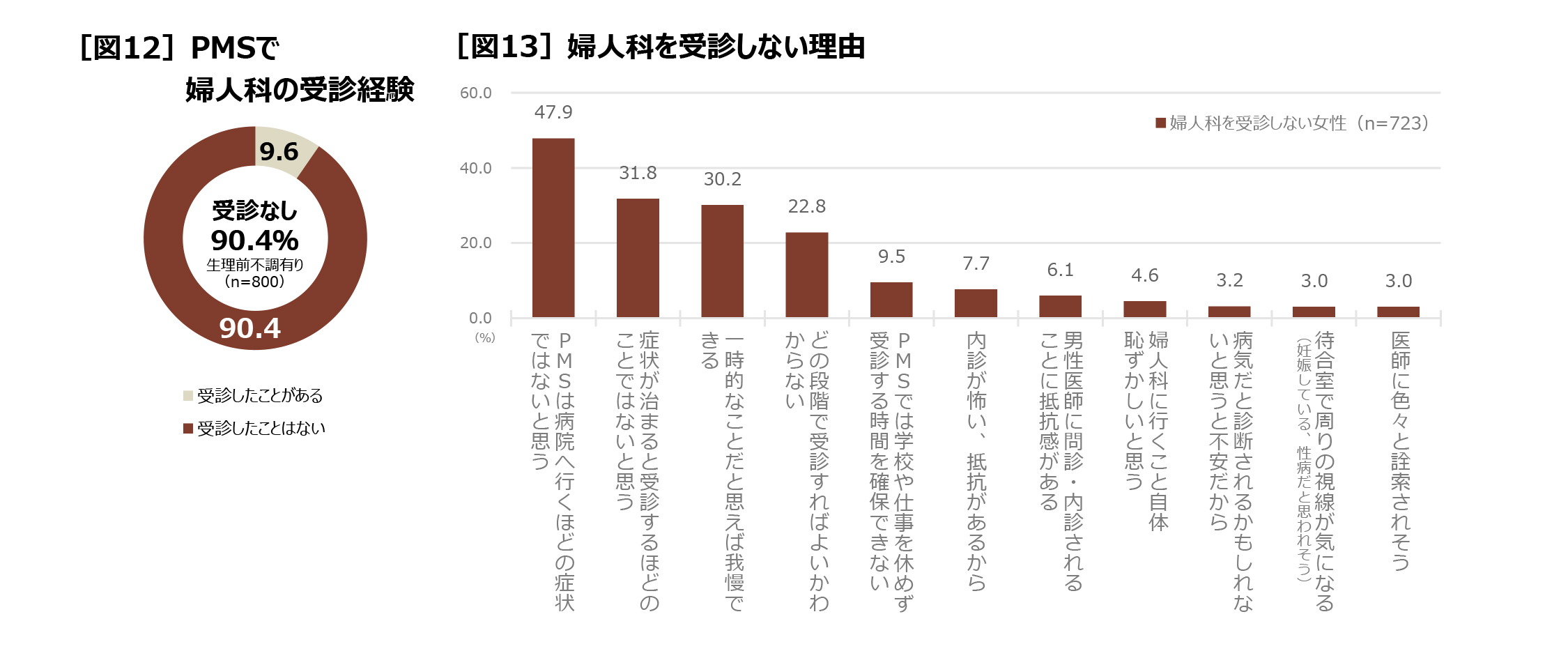 PMSに伴う症状での婦人科の受診経験を聞くと、9割が「受診したことはない」と答えました。