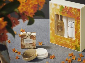 魅惑的な金木犀の花の香りを印象的に表現した「オスマンサス」シリーズ。金木犀の香りに、フレッシュなアプリコットや果汁たっぷりのラ・フランスなど、果実の香りをプラス。ラストはシダーウッドやサンダーウッドなど、ウッド系の香りが優しく爽やかに包み込んでくれます。