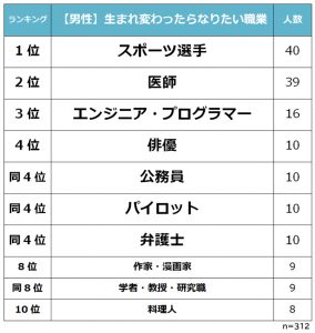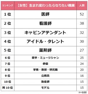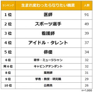 • 男女1,000人にリサーチ!生まれ変わったらなりたい職業ランキングTOP10!