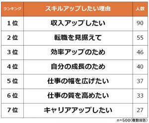 • 500人に聞いた、仕事のスキルアップのためにしていることって何?スキルアップしたい理由は?