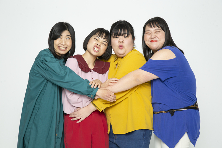 『猫塾』と『しんぼる』が合体したお笑いカルテット。現在、酒寄希望さん(写真左)が育休中のため、きりやはるかさん(中央左)、あんりさん(中央右)、田辺智加さん(右)のトリオで活動中。