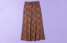 シルエットはハイウエスト×ロング丈で脚長効果も抜群! 合わせやすいブラウンをチョイスすれば、通勤も休日もシーンレスで着回せます。ちょっぴりクラシカルな柄と程フレアが相まって、はくだけでフェミニンなムードを演出♡ バックサイドに深めのスリットが入っているので、足さばもスムーズです。