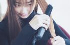 鎖骨下5cmのラインでぱつんとカット。表面のみ角を削るようにレイヤーを入れ、質感を作ります。スタイリングは、アイロンで外ハネのワンカールに、中間巻きをMIX。仕上げに毛束を崩して束感を。