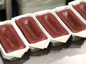 雪をイメージして白い原材料を選定し、また、焼き色がつかないように低温でじっくりと焼き上げたニューヨークチーズケーキの天面には真っ赤なラズベリーとストロベリーのソースが彩られ、見た目にも華やか!