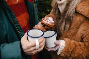 • Cute,Couple,Having,Winter,Forest,Picnic,Drinking,Tea,From,Tea