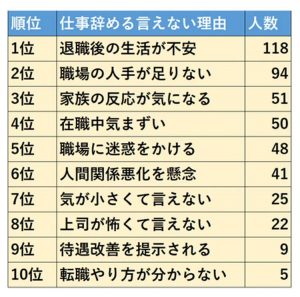 • 仕事辞めたいけど言えない…300名が選ぶ理由2位「職場の人手が足りない」じゃあ1位は?