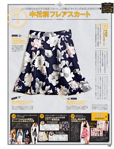 大花でも小花でもないミドルサイズの花が、水彩画みたいにふわっと描かれた、Aラインスカートのこと。動くたびにひらりと揺れて、フェミニンにもセクシーにも見え、あらゆる女の子らしさを叶えてくれる! 1シーズンに1枚あればとっても安心ですね。