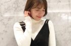 前後差のあるニットベストは、深めのスリットで抜け感をGET♡ ヒップが隠れる丈感は安心感があってうれしい!