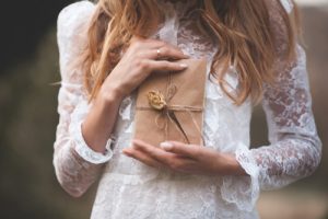 • Girl,Holding,Pack,Of,Old,Paper,Letters,With,Dry,Rose