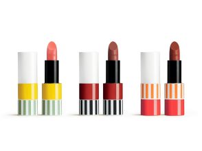夕焼けに艶めく唇でドキドキを誘って。サンセットをイメージした朱赤リップにブルーのグロスを重ねることで、彩度が落ち着き大人っぽい雰囲気に。