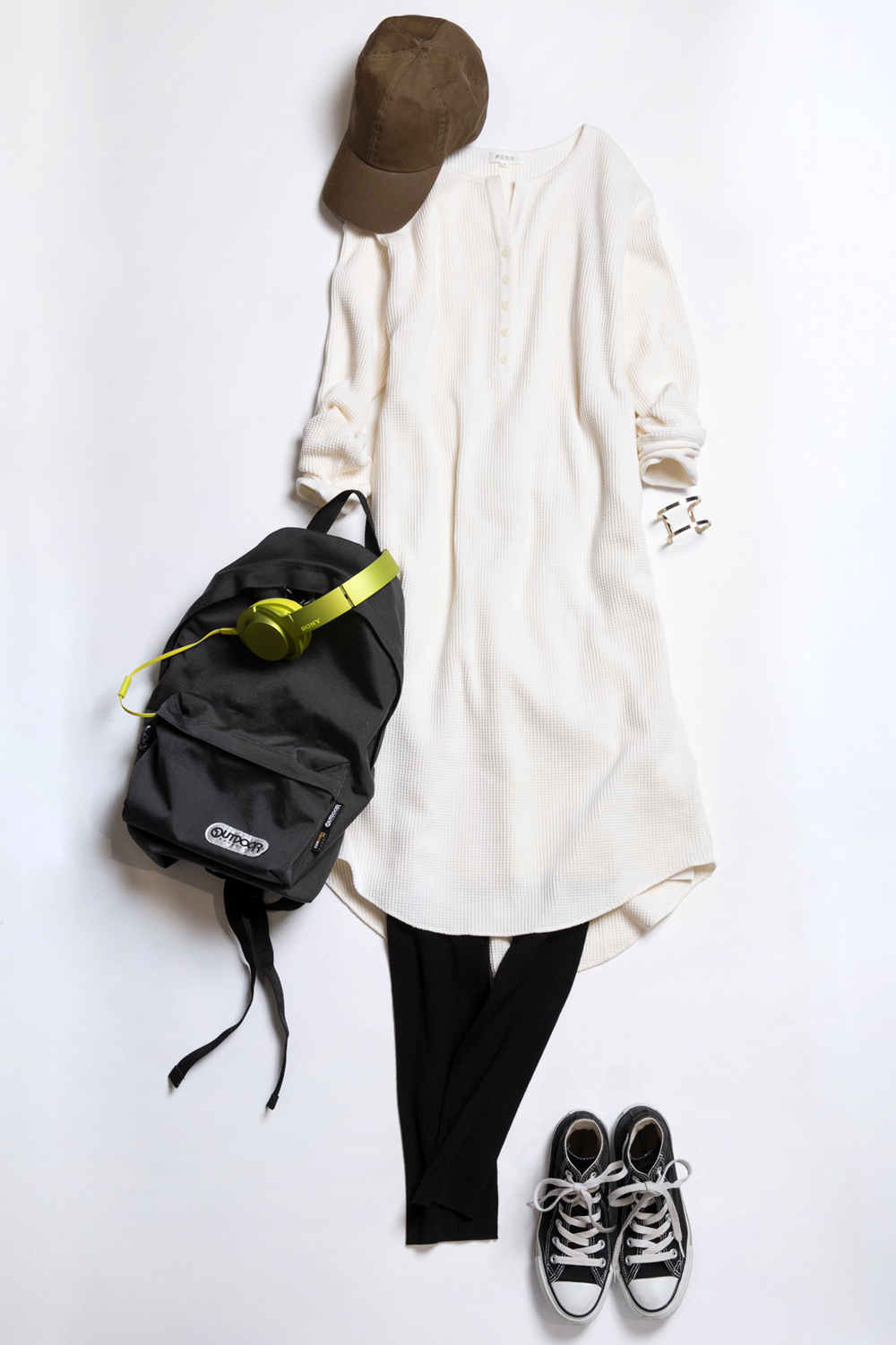 ラウンドヘムワンピのカジュアルコーデ