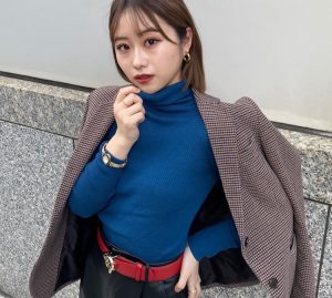 「プチプラだけどハイレベルなアイテムが揃うユニクロが大好きで、定期的にパトロールしていています(笑)。このニットは、ユニパト中に見つけて一目ボレした“Uniqlo U”のもの。首や袖口の太いリブ幅や長めの萌え袖がめっちゃかわいい! 厚手のニットであたたかく、これなら真冬も乗り越えられそう♡ 今季はざっくりとした編み地のチャンキーニットがトレンドなので今の気分にぴったりでした。