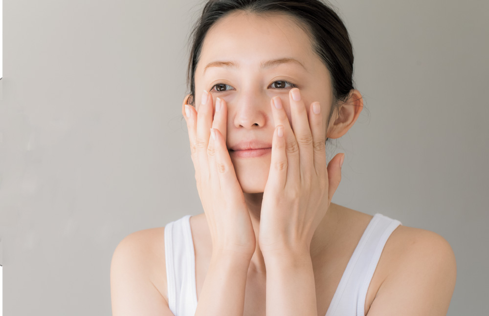 手のひら全体を顔に密着させてゆっくりとなじませていきます。