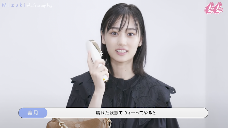 「最近使い始めたんですけど、この美顔器を使って濡れた状態でヴィーってやると、顔がシュッてなる気がします。頭用のアタッチメントもついてるので、それはおうちでお風呂に入ってるときやお風呂を出た後にやってます。むくみ防止ケア用!」