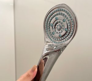 箱やシャワーヘッドのパッキン部分にブルーが使われていて、見た目もかわいいシャワーヘッドはギフトにもおすすめです」byたなべさおり(Instagram@tanaberian)