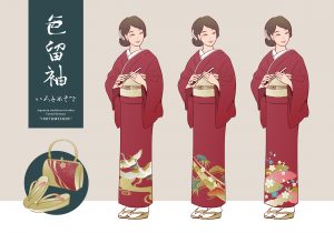 • Vector,Illustration,-,Set,Of,Japanese,Kimono,”irotomesode”,And,Japanese