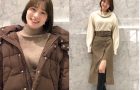 ■12/6(月)/ムートンコート×ブラウンニット×アイボリースカート