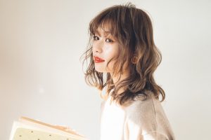 「韓国式のレイヤーカットを施した今一番人気のヘアスタイル。髪がまとまって動きが出るカールは、38㎜のコテでリバース巻きに」(SHIMA GINZA ANNEX・青木佑樹さん)