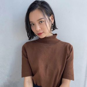 タイトで重ためのウェット質感ではなく、表面だけ軽やかなツヤをON! スタイルは小顔効果を狙ったあごラインのぱつっとボブ。10トーンのアプリコットブラウンを仕込むことで、スタイリング剤の質感に加えてカラーでもツヤ感アップし、今季らしさも加速。