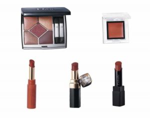 チークを頬骨に沿ってさりげなく陰影をつけるように。リップは、一度指にとり、軽く叩き込むようになじませます。頬と口元を潔くヌーディにまとめることで、主役の目元を一層際立たせて。