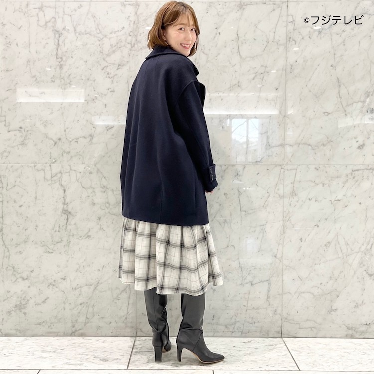 ■1/31(月)/ネイビーショートコート×チェックワンピース