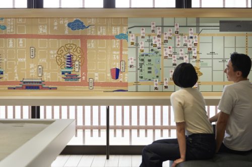 施設内には、扉面で現代、中面で平安時代の街の様子を知ることができる、東寺エリアのスペシャルマップが!昔から変わらずいまも残っているスポットや、ガイドブックには載っていないようなローカルな名店などとにかく情報が盛りだくさん!京都の街歩きをより一層充実させてくれる工夫がこんなところからも感じられますよね♡