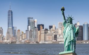 • Statue,Of,Liberty,With,Manhattan,Downtown,Skylines,Building,In,Background,