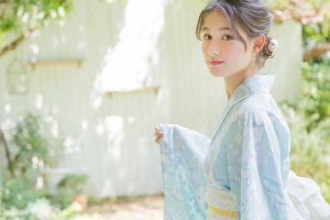 着物や浴衣のときはやっぱり、うなじをキレイに見せられるアップヘアがイチオシ! くるりんぱで後頭部に立体感をつければ、デコラティブになって特別感も◎。ヘアアクセにはつけるだけでグッと和っぽく仕上がるかんざしをセレクト。ボリューミーなコットンパールで、華やかさと清楚な印象を欲張りに手に入れて。