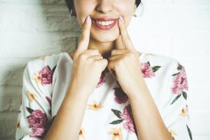 • Pretty,Woman,Making,Fake,Smile,With,Her,Fingers