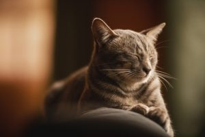 • Domestic,Tabby,Cat,Sleeping,On,A,Sofa,Inside,A,House