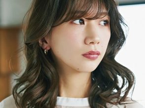 ヘア&メイク坂口さん「骨格がきれいなので、あごくらいの長さのボブが似合うと思いバッサリカットしました。顔周りにレイヤーを入れて動きをつけ、透明感のあるカラーで抜け感たっぷりの仕上がりを意識しました」