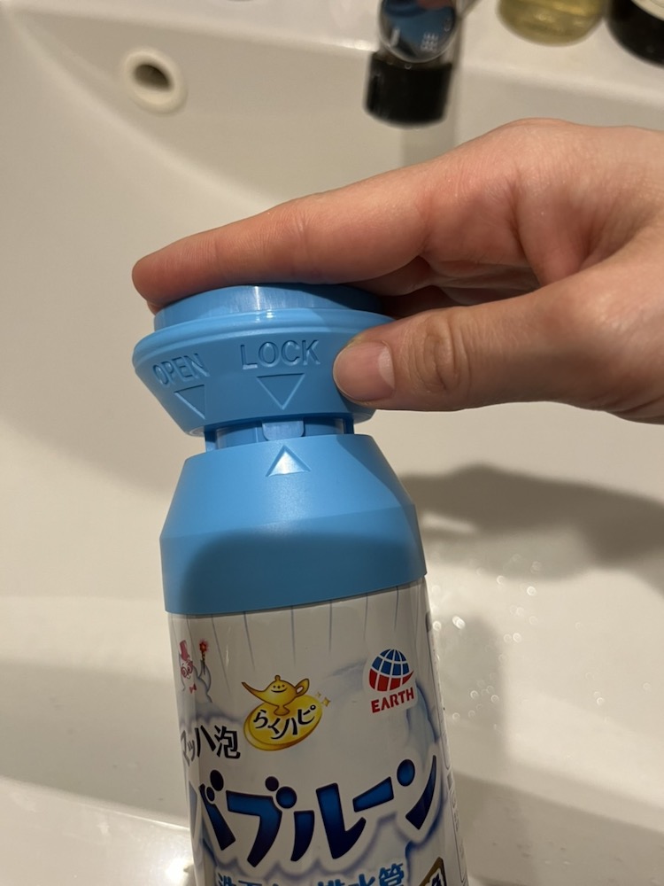 アース製薬から発売されている”らくハピ マッハ泡 バブルーン洗面台の排水管”という商品。その名のとおり、排水口にバブルーンを3~7秒押し付けるだけで、泡が排水管を掃除してくれるという代物です。