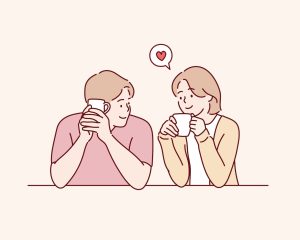 • Couple,In,Love,Drinking,Coffee.,Hand,Drawn,Style,Vector,Design