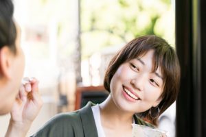 話しているのに全然目を合わせてくれないと、愛想がいいとは感じられません。もし目を見るのが苦手なら、相手の鼻の辺りを見て話すと、少し楽に話せるかも。間違ってもスマートフォンを見ながら会話するなんてダメですよ。