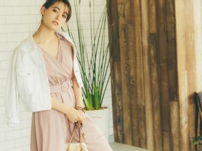 ワンピース¥19,800(CASA FLINE表参道本店<casa fline>)、バッグ¥16,500(MIKIRI<クードル>)、ピアス¥25,300(スピック&スパン ルミネ有楽町店<Lilas>)、リング[人さし指]¥2,310・[薬指]¥1,980(アネモネ/サンポークリエイト)