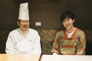 入店してすぐのテーブル席の奥にあるチョークアートの絵をみてカメラマンの花村さんと、なんかこの絵みたことあるような…と話していたところ、店長のジャンホさんが話しかけてくれた。なんと本連載で2年ちょっと前にお邪魔させて頂いた『ハルダモンカレー』出身の方で、KERAKUはハルダモンプロデュースのお店だったのだ。そしてその時に、とりあえずチキンカレーお姉さんと私、まさかの一緒に写真を撮っていたのである。なんという巡り合わせ。思い返せば、カレーのスタイル、そびえたつウズラのたまご、メニューの雰囲気など、ハルダモンカレーを彷彿とさせる。うれし驚きな再会です。