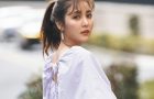 【1】白のハーフムーンバッグでフェミニンなアクセントを