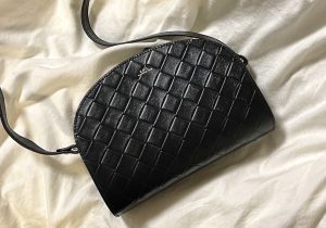 【4】メッシュのハーフムーンバッグでシックな配色を軽やかに