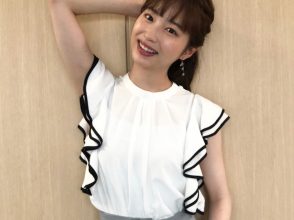 『めざましテレビ』の谷尻萌さんの今日のコーデをお届けしました。肩見せニットの夏コーデ、是非マネしてみてくださいね。