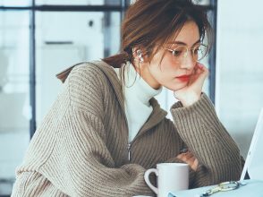 カジュアルなコートに鮮やかな色を差すと、もっさりせずおしゃれ。あえて毛束やネップを出したニットなら、暖かみも◎。エクリュ×ブルーの組み合わせが、柔らかな冬の日差しに映える♡ べっ甲メガネやロゴバッグなど、キャッチーな小物をちりばめてこなれ感をプラスして。