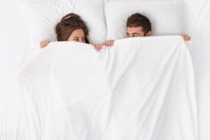 • Happy,Loving,Couple,Have,Fun,In,Bed,,Look,From,Under