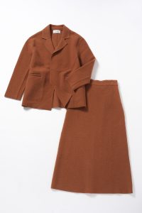 同素材のスカートは、ほんのりAラインのちょっと懐かしいシルエット。シンプルながらも女っぽさやトレンド感はしっかり演出。ハリのあるニット素材でほっこり感も阻止できます♡