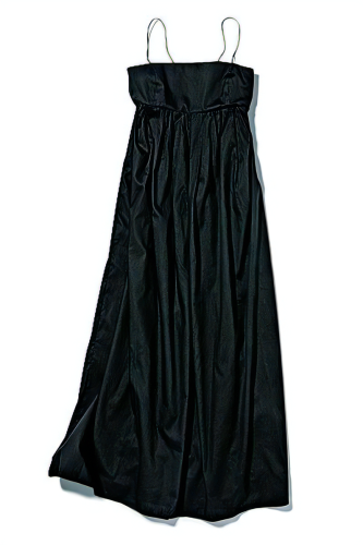 ヒモが繊細でかわいい〝ガリャルダガランテ ネイビー〟のキャミワンピは、今年のきれいめコーデに大活躍。レイヤードしても1枚でもキマる!