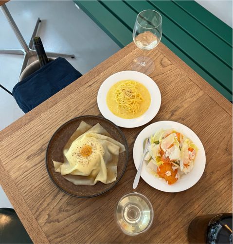 事前に見たInstagramでは、ほとんどの人が食べていたこの野菜ラザニア。かなり気になっていたのですが、ひとくち食べて超感動!! 優しいスープの奥深い味と、うまみが凝縮された野菜の相性が最高で、白ワインにとっても合う♡ 人気メニューだというのも納得です!